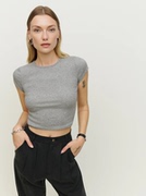 reformation美国代购弹力舒适包身内搭上衣 短袖圆领露脐短款T恤