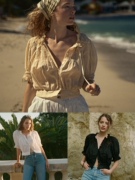 DOEN 美国代购 AGATHA 碎花刺绣法式泡泡袖上衣 短款前系扣衬衫