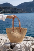法国代购手工制作休闲度假风草编筐提篮 法式扇贝边真皮单肩包