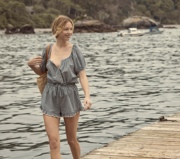 DOEN 美国代购田园格子印花法式泡泡袖上衣衬衫 高腰荷叶边短裤